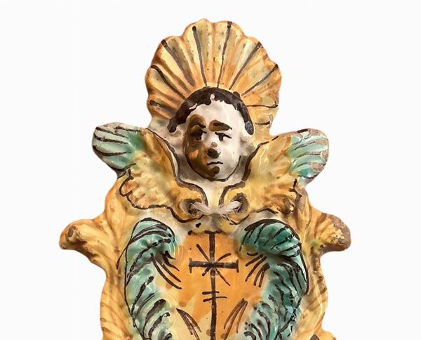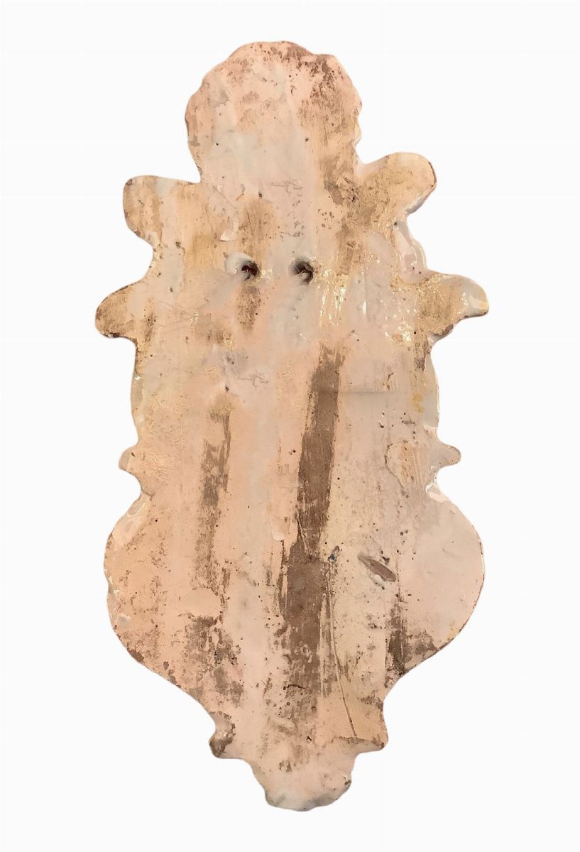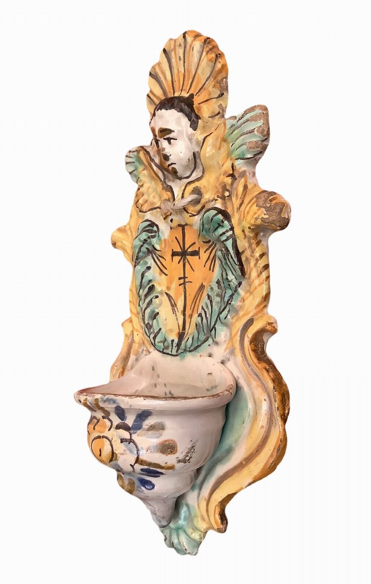 Holy water stoup in Arianese majolica, 19th Century