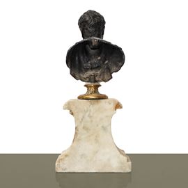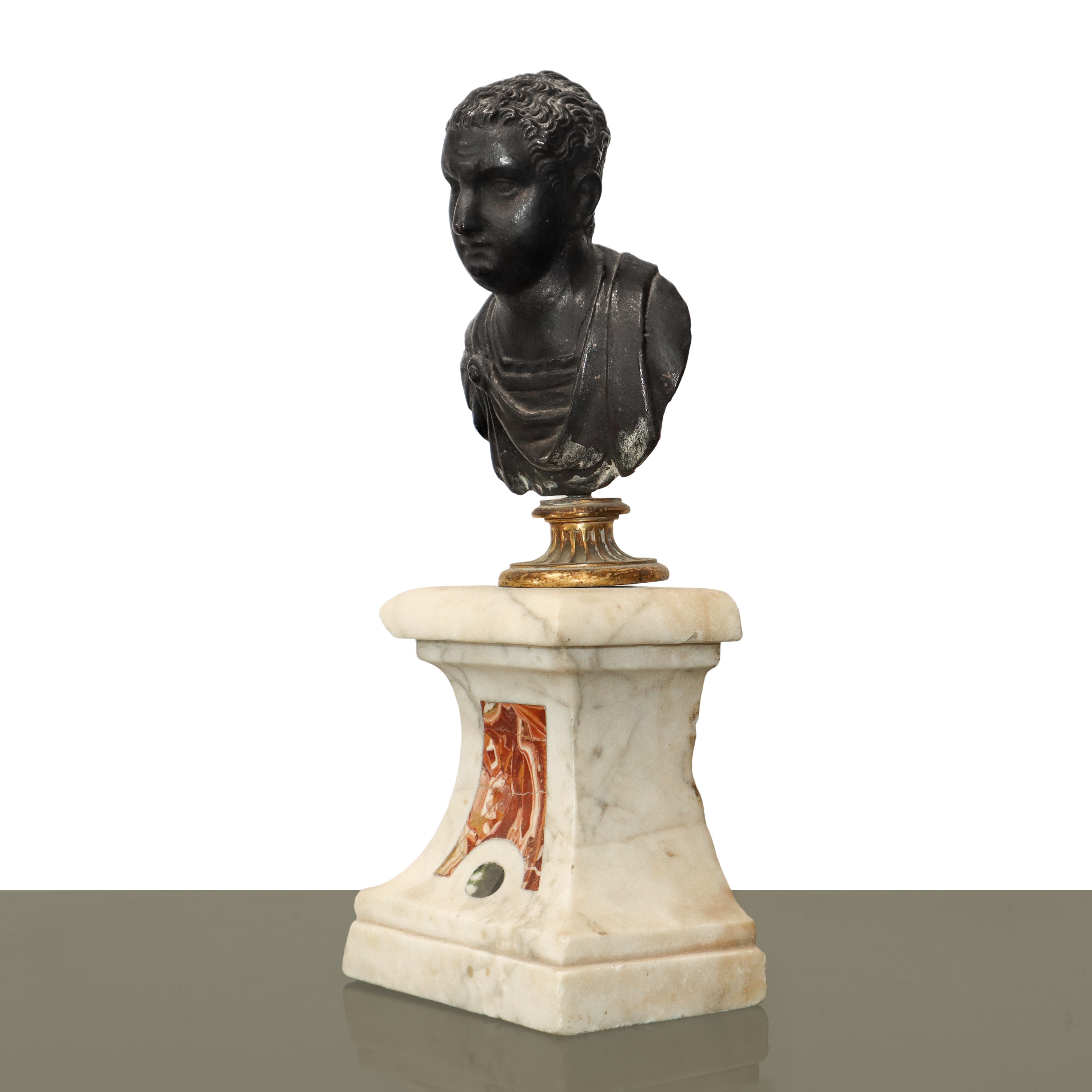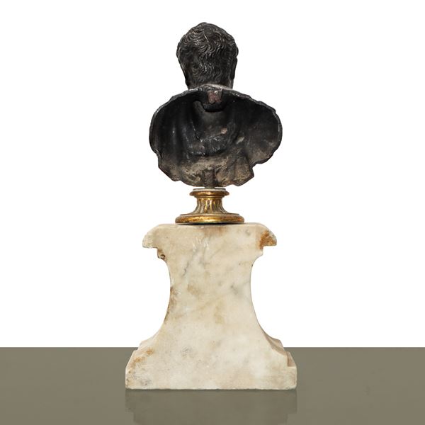 Roman figure, lost-wax bronze on a marble base, 18th century