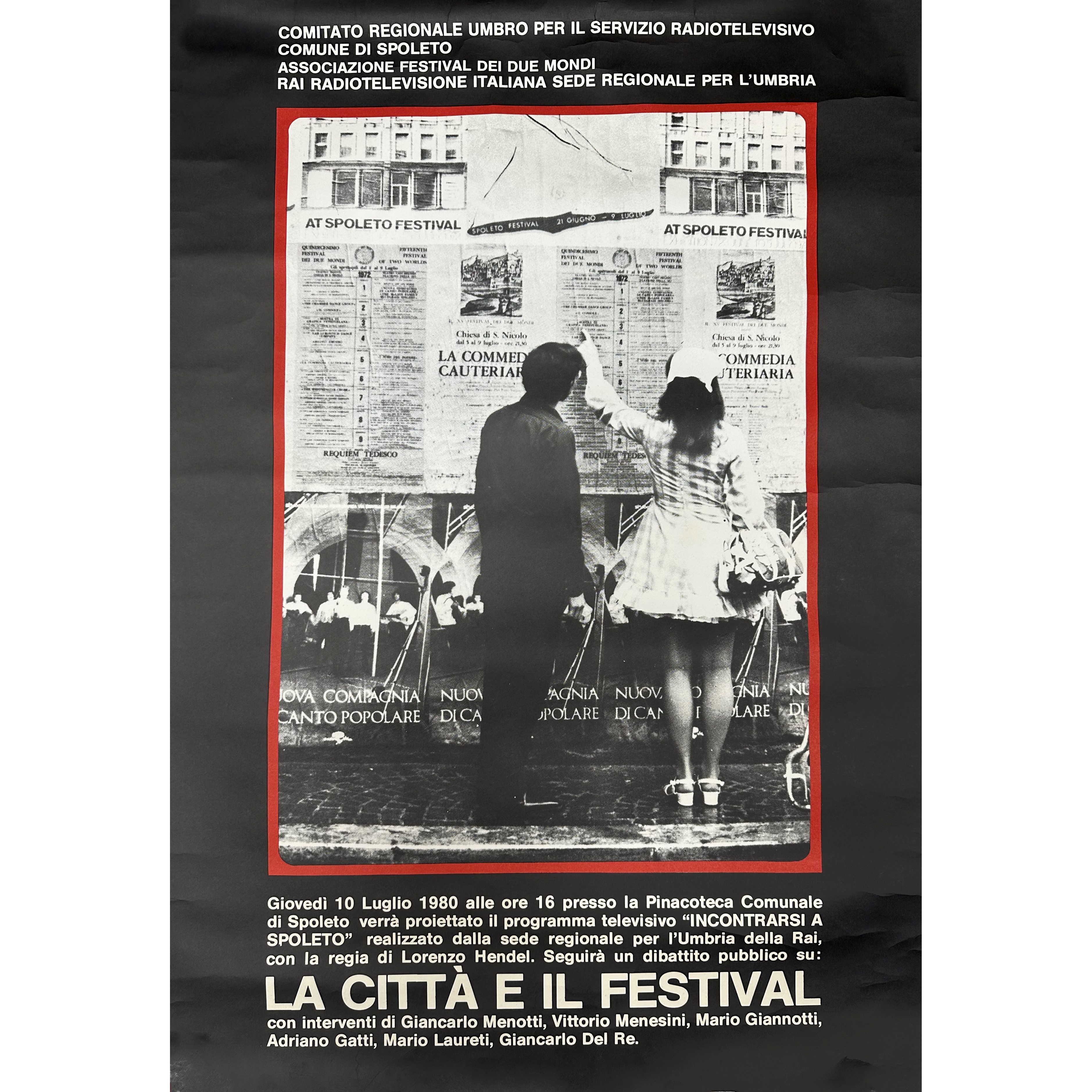 Poster for the screening of the television program "Incontrarsi a Spoleto" (Meeting in Spoleto), produced by the Umbria regional headquarters of RAI. Photograph by M. Stefanetti. Normal signs of aging.